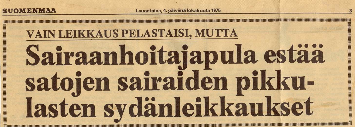 - Yhdistyksen perustamiskokous 13.12.1975 Lastenklinikan luentosalissa, paikalla lähes 50 sydänlapsen vanhempaa